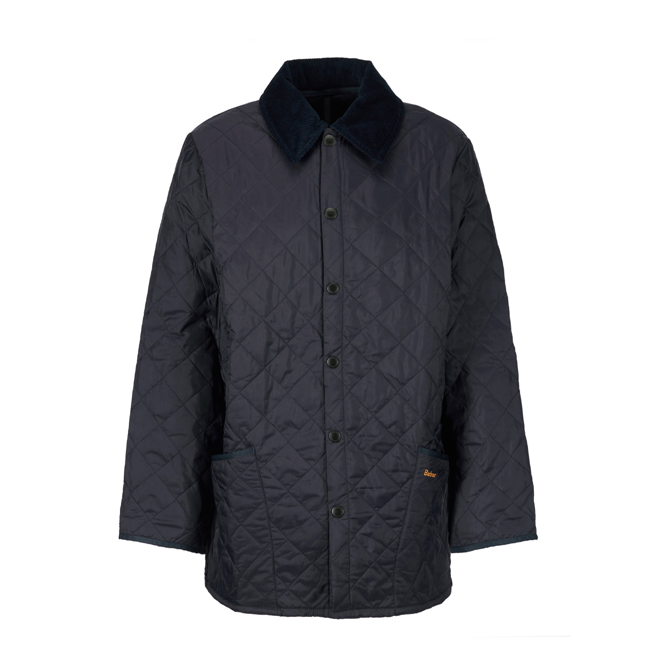 The Barbour Liddesdale Quilted Jacket in Navy is a best-selling men’s jacket with a diamond-quilted outer and lightweight nylon lining. Featuring a cord collar, stud front fastening, and rear vents, it provides warmth and ease of movement. Practical patch pockets with Barbour embroidery and a zipped inner pocket make this jacket both stylish and functional for everyday wear.