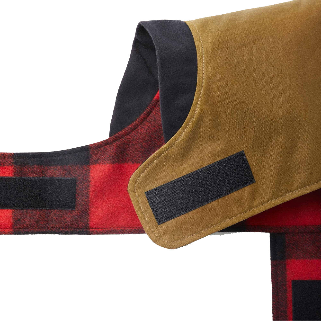 The Filson Shelter Cloth Dog Coat in Dark Tan keeps your dog warm and dry during walks. Made from Filson’s water-resistant midweight waxed cotton, it is reversible with Mackinaw Wool for extra warmth. Adjustable hook-and-loop fasteners and a sueded-cotton Moleskin neck lining ensure comfort and a secure fit.