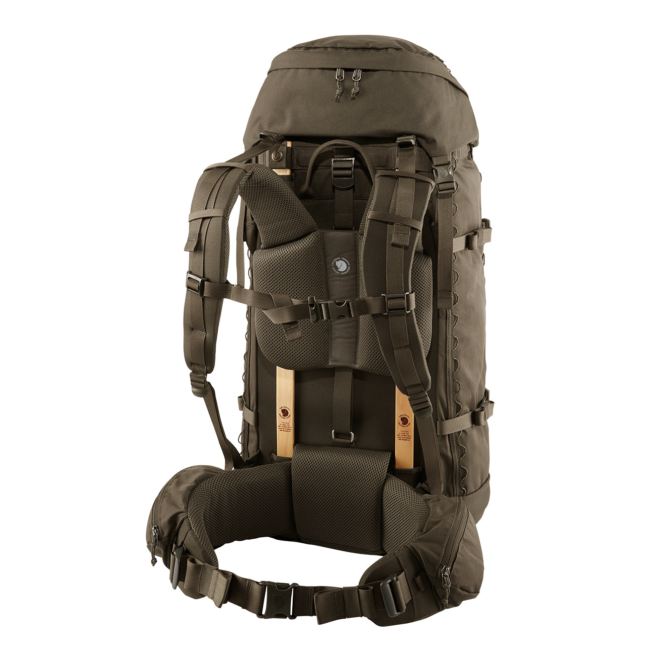 Fjallraven have featured many function elements to ensure the functions are maximised such as an adjustable back length with a robust, ergonomic carrying system and a roomy main compartment with an extra zippered opening at the bottom. The top pockets provide ample storage allowing you to add extra volume with accessories in the Singi range – to carry a rifle, fishing gear, or a tripod.