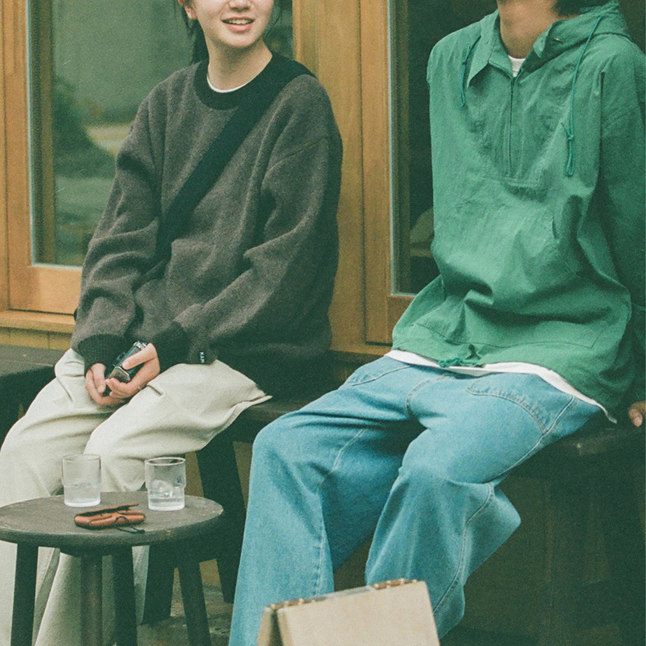 The Kappy Ringer Round Wool Knit in Green combines classic vintage detailing with modern comfort. Crafted from a soft wool-nylon blend, it provides warmth while remaining lightweight and breathable. The contrast collar and cuffs give it a subtle retro edge, while the relaxed, slightly oversized fit ensures an easy, natural drape.