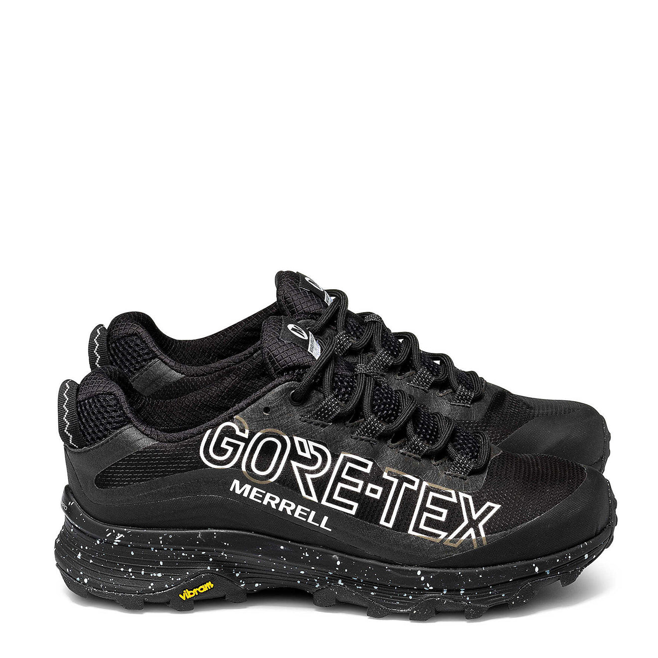The Merrell Moab Speed GTX SE Trainer in Black is the latest innovation in hiking from the Merrell brand pairing the knowledge and trail insights from the best-selling hiking boot, the Merrell Moab, with the latest innovations from athletic hikers across the globe. Improved traction with the incorporation of Vibram TC5+ rubber, specially formulated for Merrell, with the an all-new design and traction lugs. Hikers know that comfort is king and the all-new Moab Speed with 30% increase in foam underfoot. Breathability also significantly improved incorporating learnings from Merrell's best selling Merrell Test Lab trail running lineup. Underfoot you will find a secure fit heel counter and a full length rock plate to keep you confident on the trail in any conditions. This version also incorporate Gore-Tex, the most trusted name in waterproofing to keep your feet dry in inclement weather.