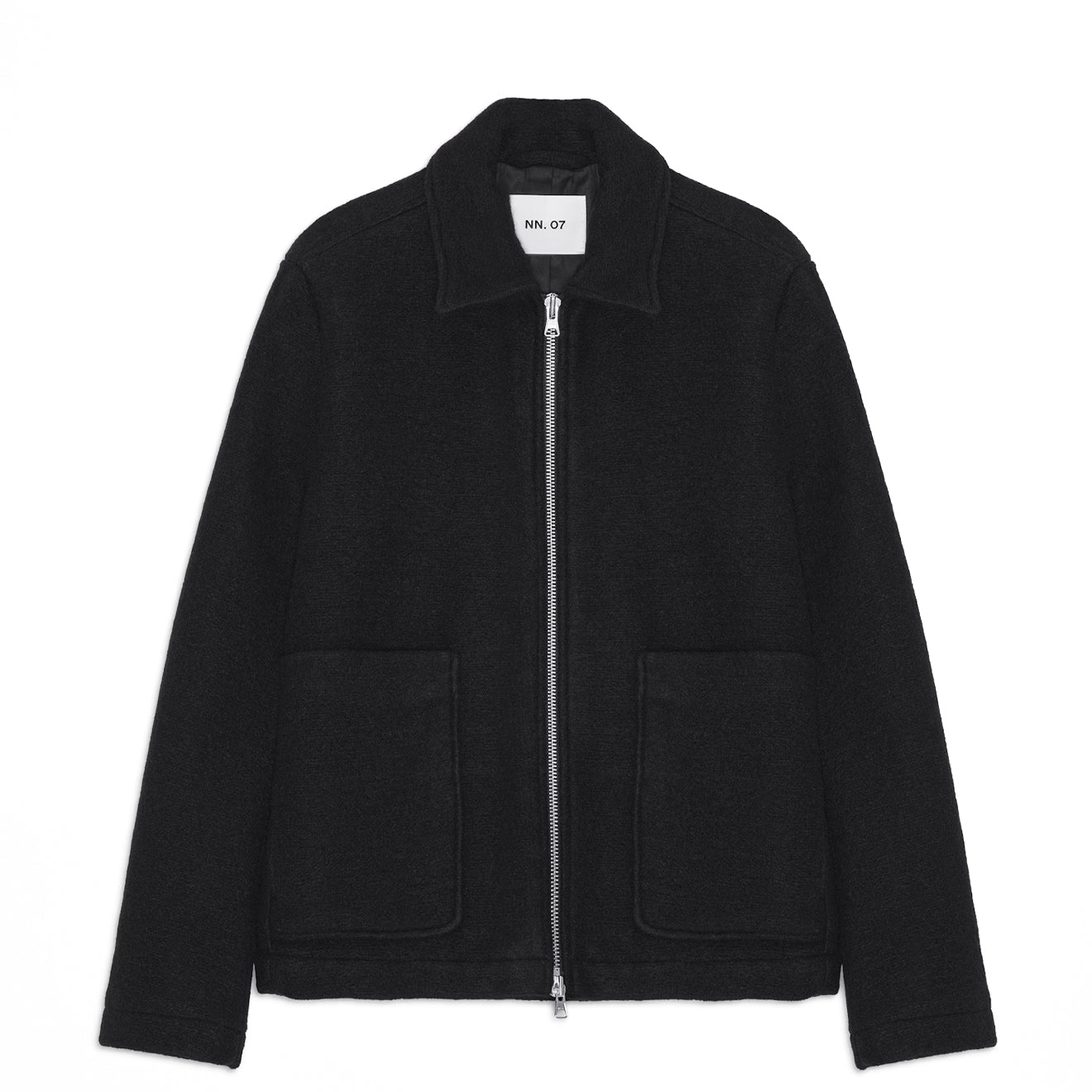 The NN07 Gael Jacquard Jacket in Black is crafted from a heavyweight wool blend with a textured jacquard weave for warmth and durability. It features two large front pockets, a two-way zipper, and hidden inner pockets for practical storage. This jacket offers reliable comfort and classic style, making it ideal for layering in cooler weather.