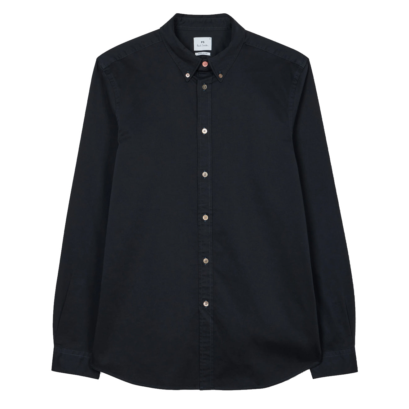 The Paul Smith Cotton Sateen Shirt in navy is a comfortable, versatile shirt made from a cotton-elastane blend with stretch. Its garment-dyed finish, button-down collar, and curved hemline create a relaxed yet polished look suitable for casual or smart-casual wear.