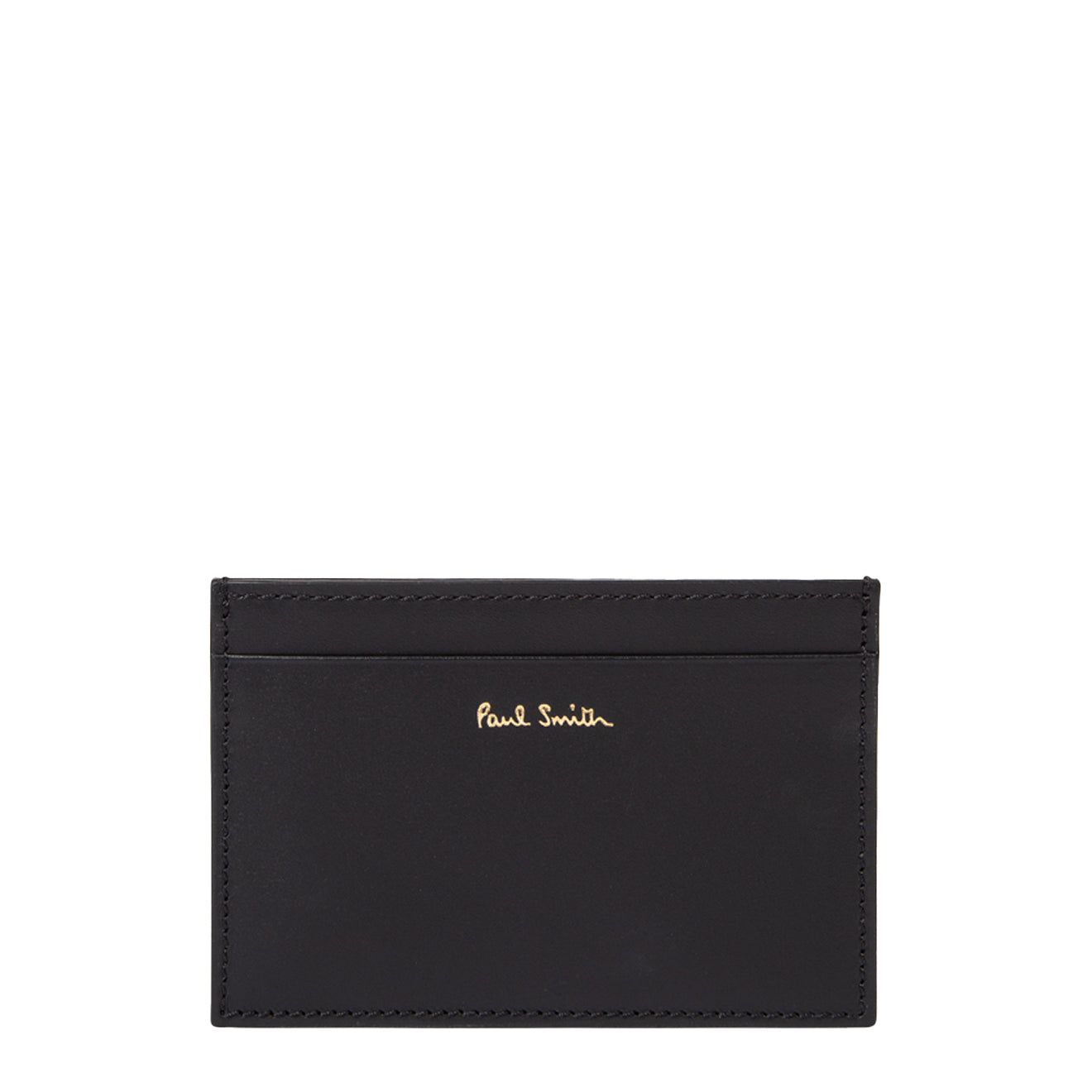 The Paul Smith Credit Card Case in Black is a sleek and refined everyday essential. Crafted from 100% calf leather, it offers a premium feel with excellent durability. The smooth black finish is contrasted by Paul Smith’s signature multicolour stripes, adding a subtle touch of character.