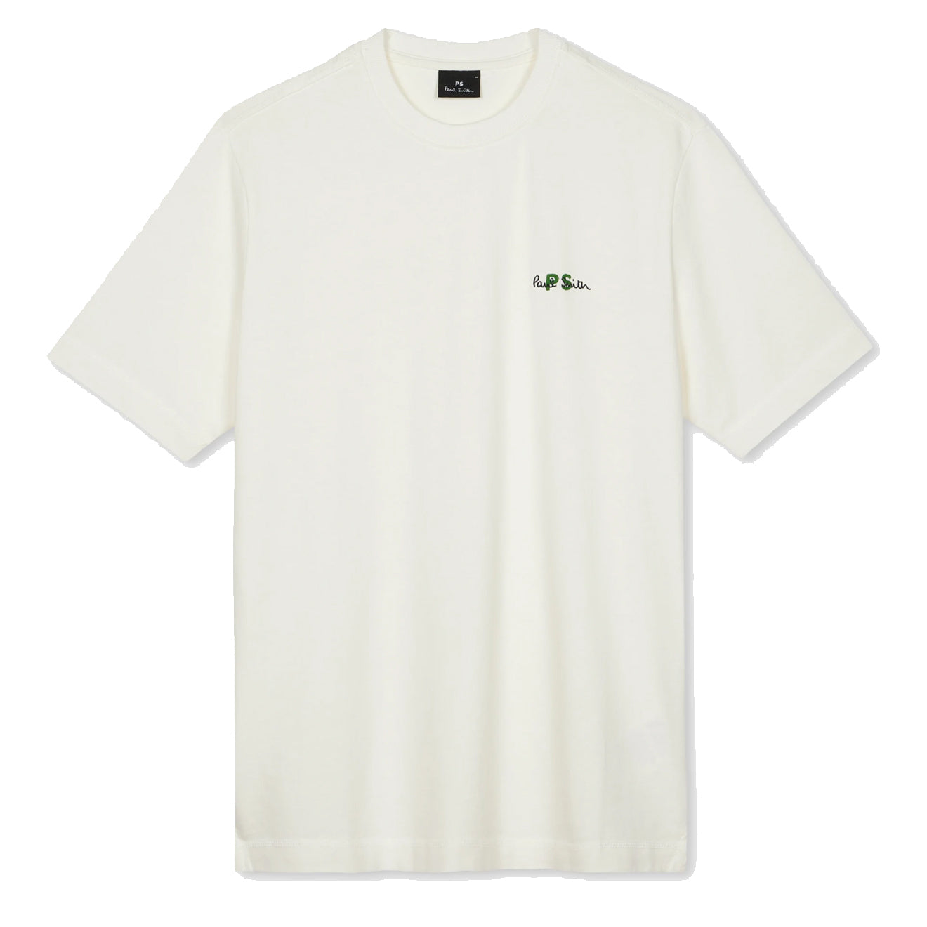The Paul Smith Embroidered PS Logo T Shirt in white is a heavyweight cotton tee crafted from 100% cotton. Its classic crew neck and embroidered PS logo on the chest offer a clean, versatile style suitable for everyday wear.