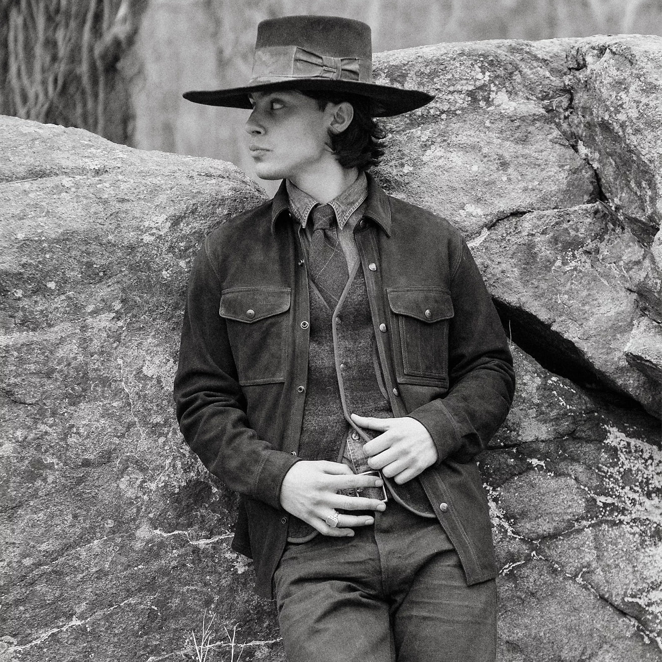 - Deep V-neck with snapped front placket featuring custom “The Double RL & Company Vest” metal snaps.